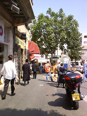 Mea Shearim Street towards the "Or Ha'Chaim" bookstore.